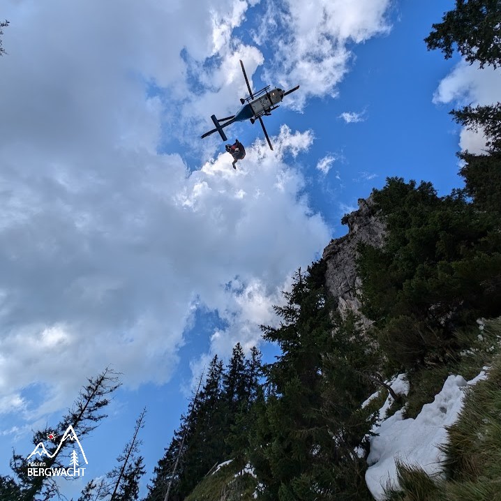 Am Mittwochabend ging es für die Bergretter auf den Ahornreiteitweg südlich des Branderschrofen um ein frierendes und dekompensiertes Pärchen terrestrisch (bodengebunden) zu versorgen und zur Tegelberg-Bergstation zu führen.