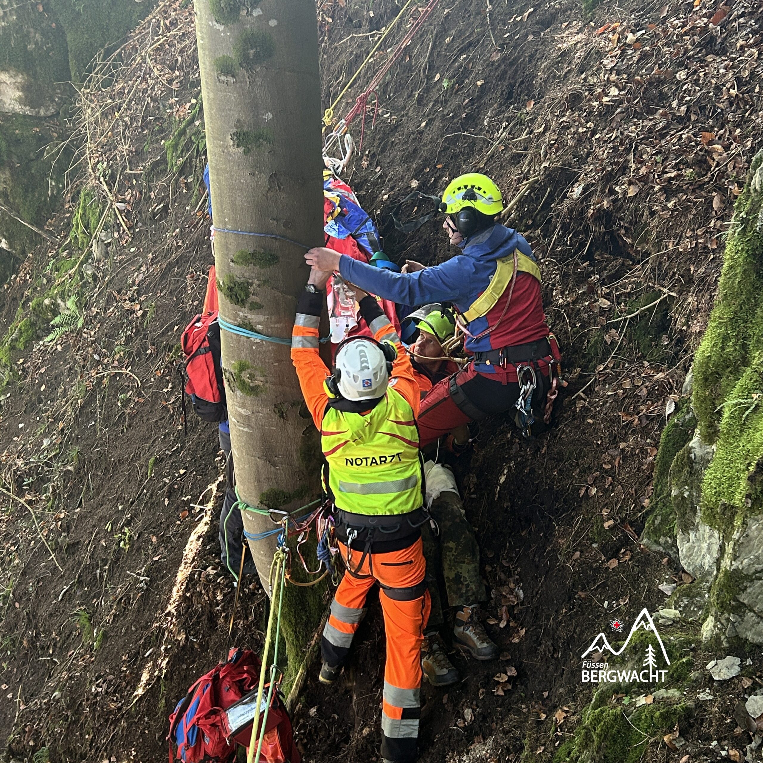 Für die Sicherheit der gesamten Ausbildung sorgen 15 Fachausbilder der Bergwacht Allgäu und medizinischen Support und Feedback erhielten die Notärzte von Ausbildern des BRK.