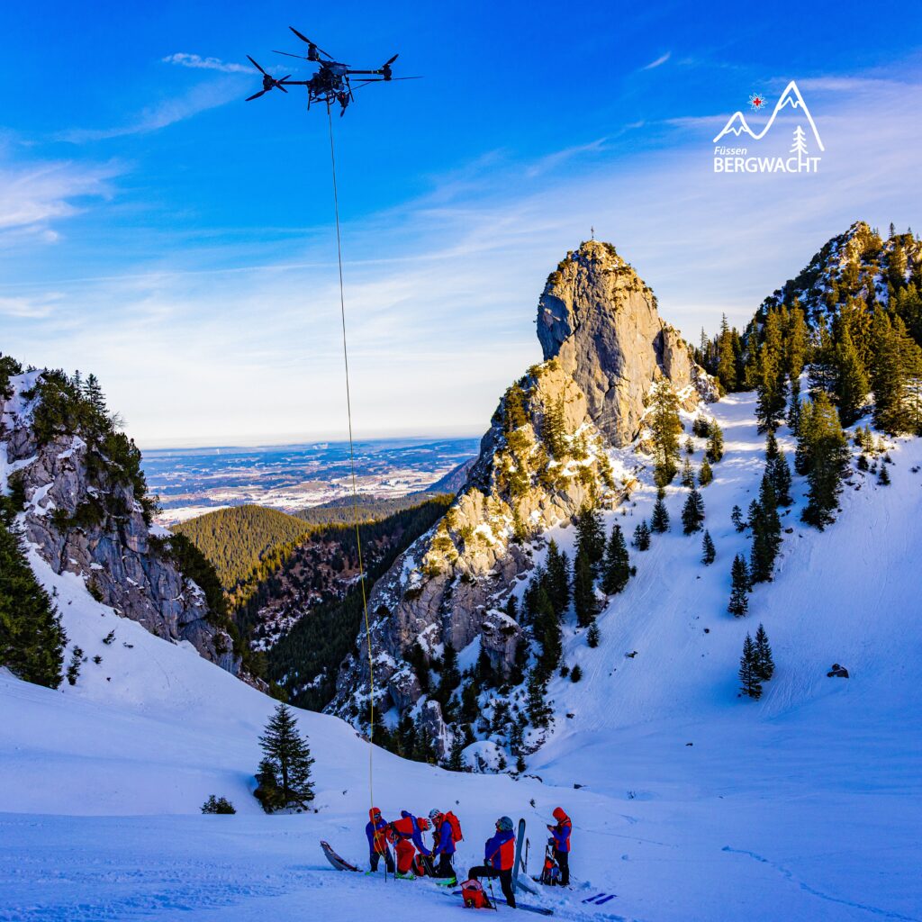 Füssener Bergretterinnen und Bergretter haben im Dienstgebiet das Vorgehen bei einem Lawineneinsatz geübt. Ein Einsatzszenario, welches in den letzten Tagen und Wochen leider schon viele Menschenleben gekostet hat. Dabei wurde auch eine neuartige Lastendrohne der Bergwacht Bayern erprobt. Sie ist derzeit bei den BOS-Organisationen (Behörden und Organisationen mit Sicherheitsaufgaben) in Deutschland einzigartig.