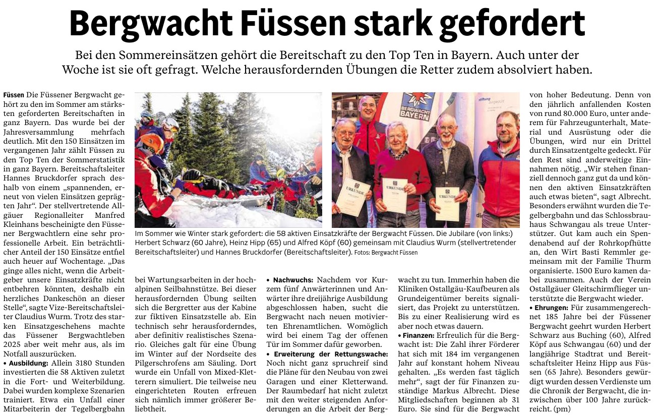 Die Bergwacht Füssen zieht Jahresbilanz – Allgäuer Zeitung